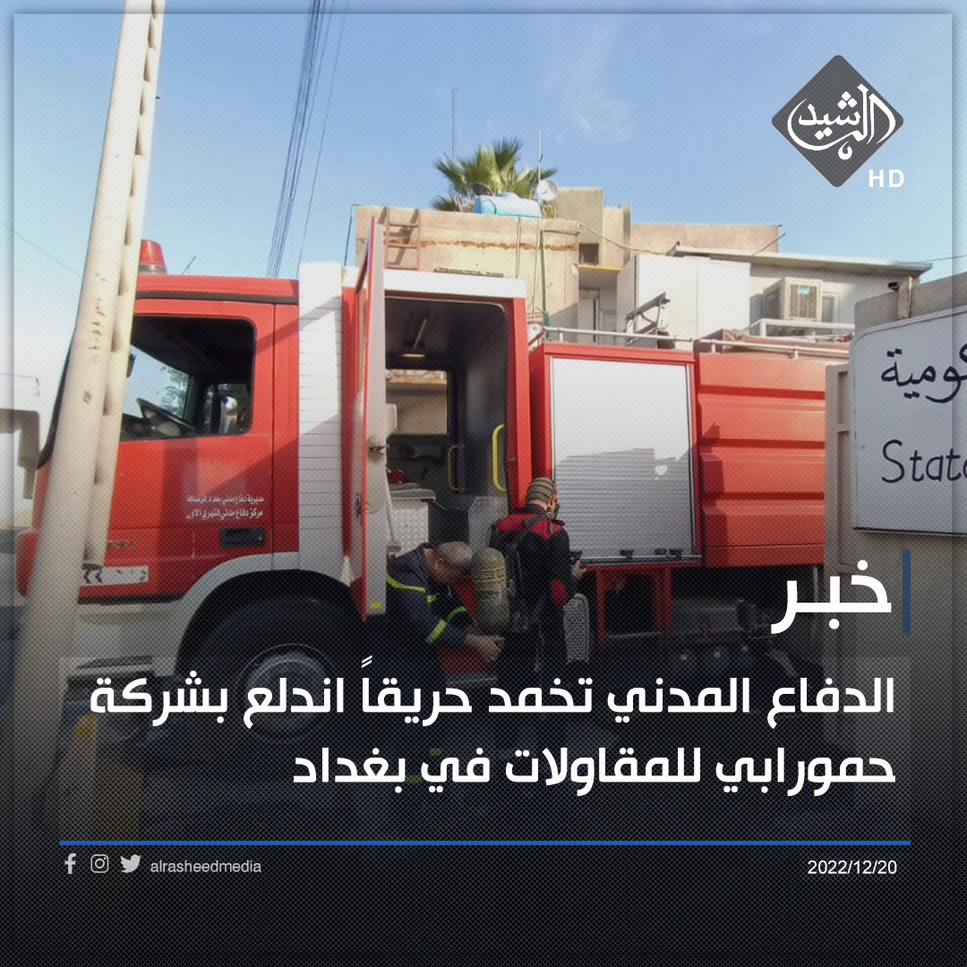 الدفاع المدني تخمد حريقاً اندلع بشركة حمورابي للمقاولات في بغداد