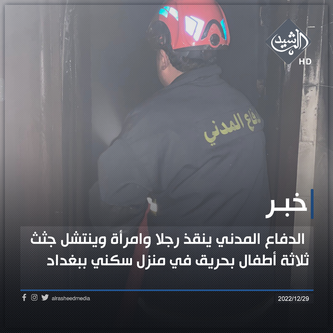 الدفاع المدني ينقذ رجلا وامرأة وينتشل جثث ثلاثة أطفال بحريق في منزل سكني ببغداد