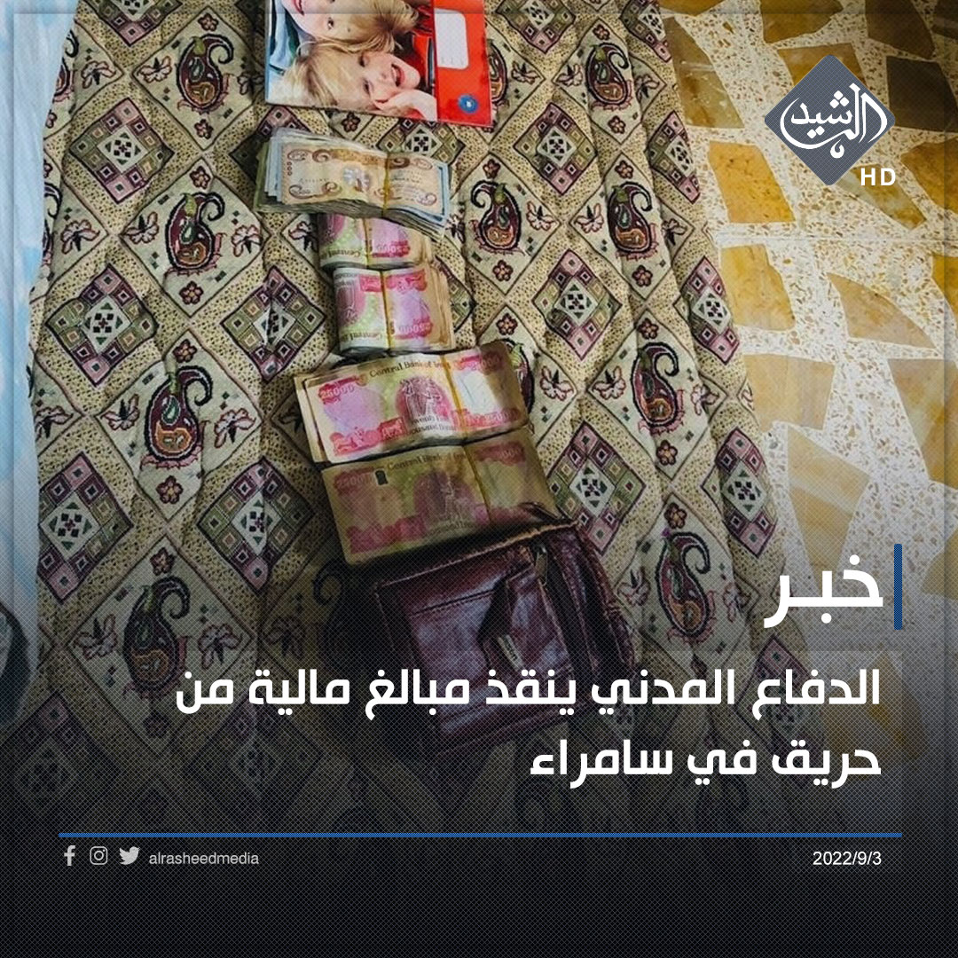 الدفاع المدني ينقذ مبالغ مالية من حريق في سامراء