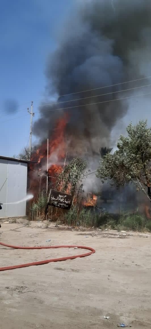 الدفاع المدني يخمد حريق منطقة القصر الأبيض ببغداد