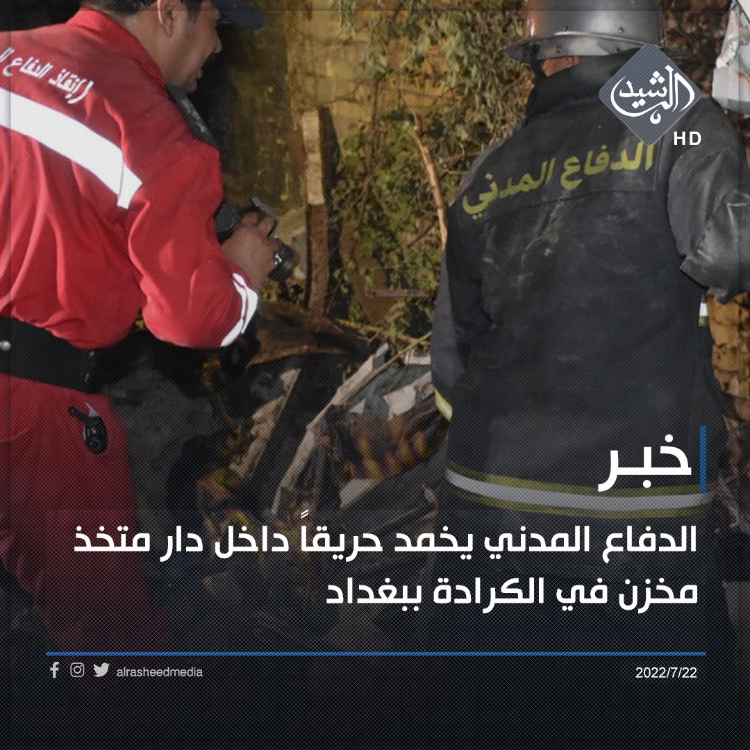 الدفاع المدني يخمد حريقاً داخل دار متخذ مخزن في الكرادة ببغداد