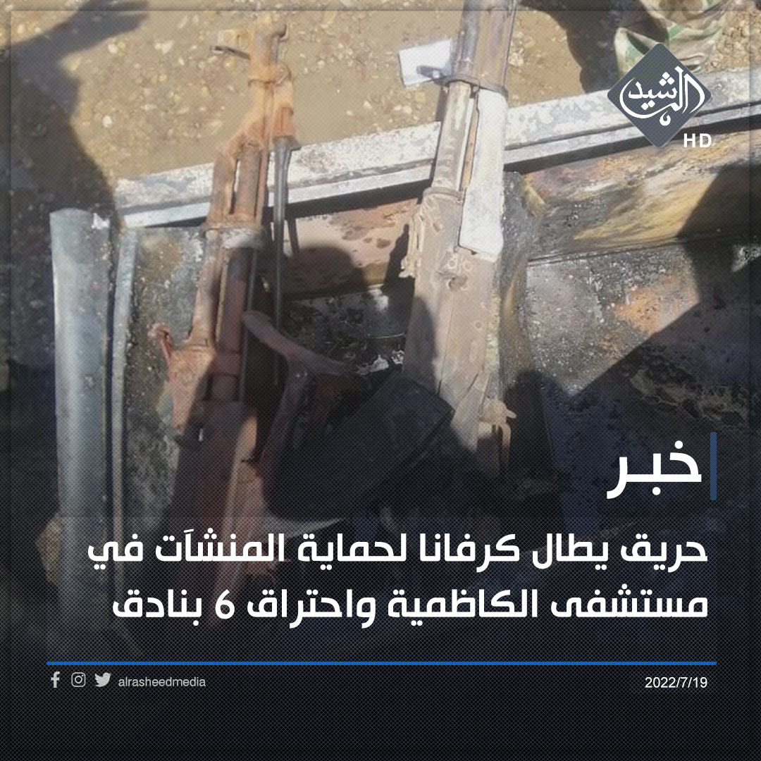 حريق يطال كرفانا لحماية المنشآت في مستشفى الكاظمية واحتراق ٦ بنادق