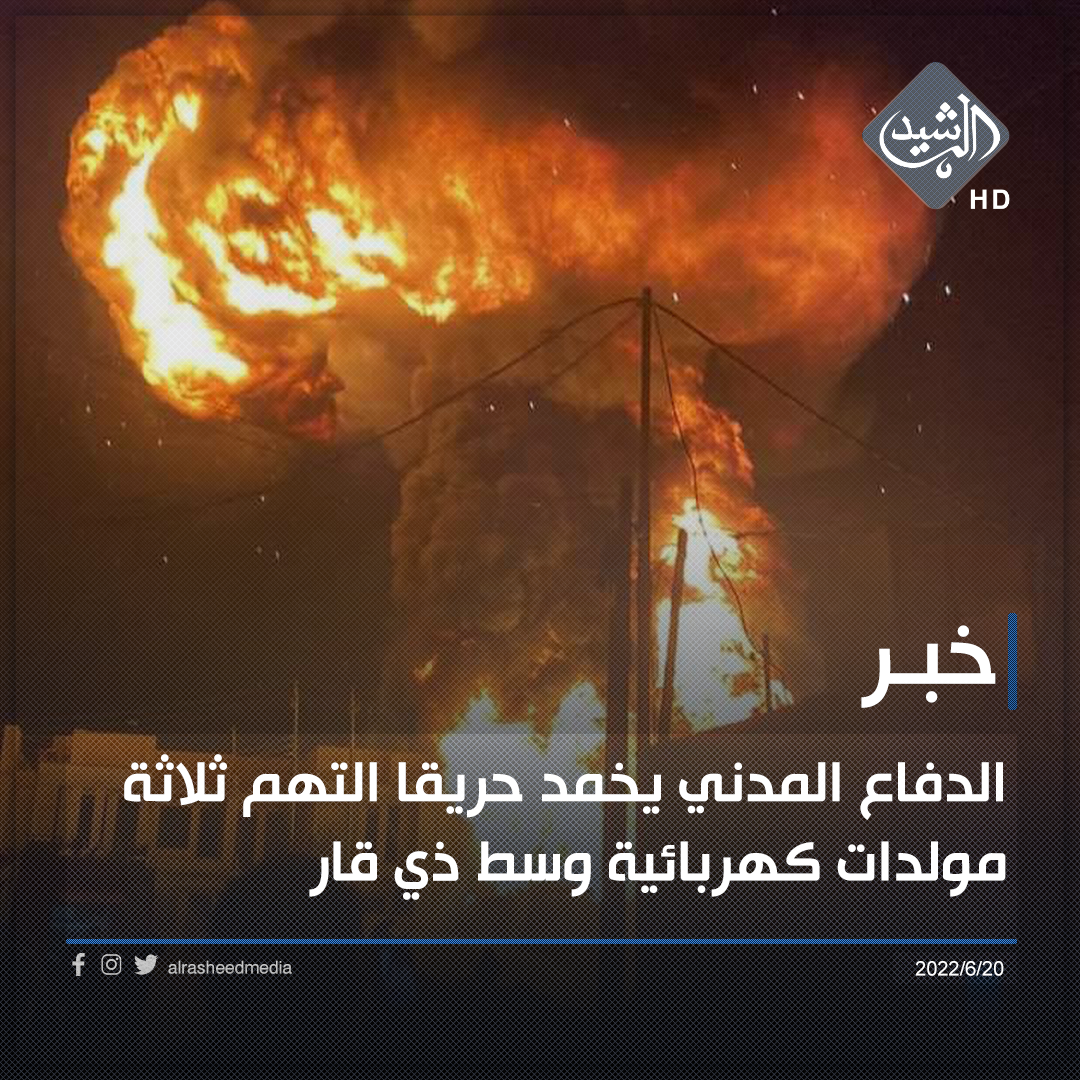 الدفاع المدني يخمد حريقا التهم ثلاثة مولدات كهربائية وسط ذي قار