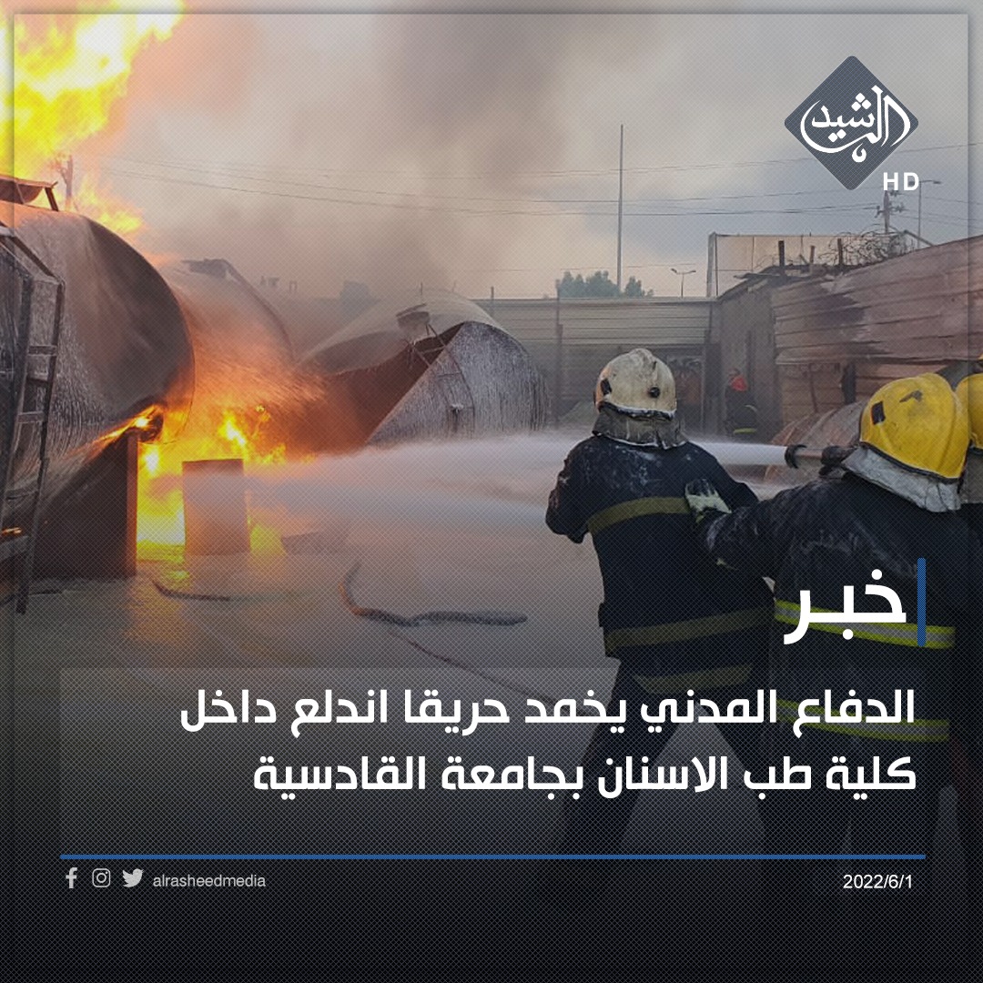 الدفاع المدني يخمد حريقا اندلع داخل كلية طب الاسنان بجامعة القادسية