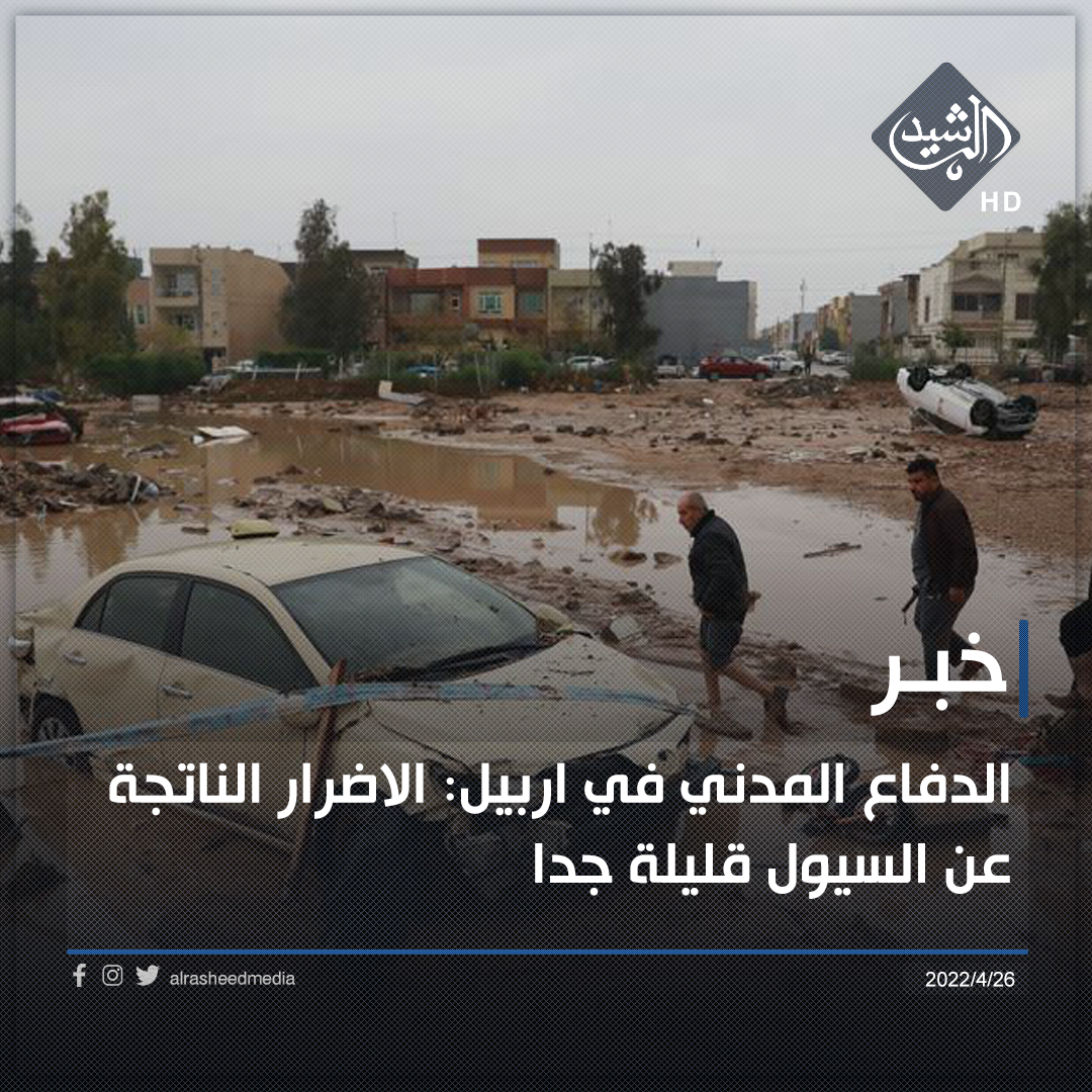 الدفاع المدني في اربيل: الاضرار الناتجة عن السيول قليلة جدا