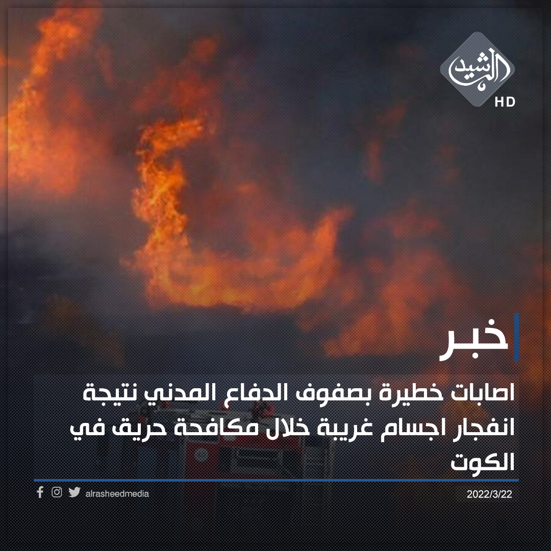 اصابات خطيرة بصفوف الدفاع المدني نتيجة انفجار اجسام غريبة خلال مكافحة حريق في الكوت