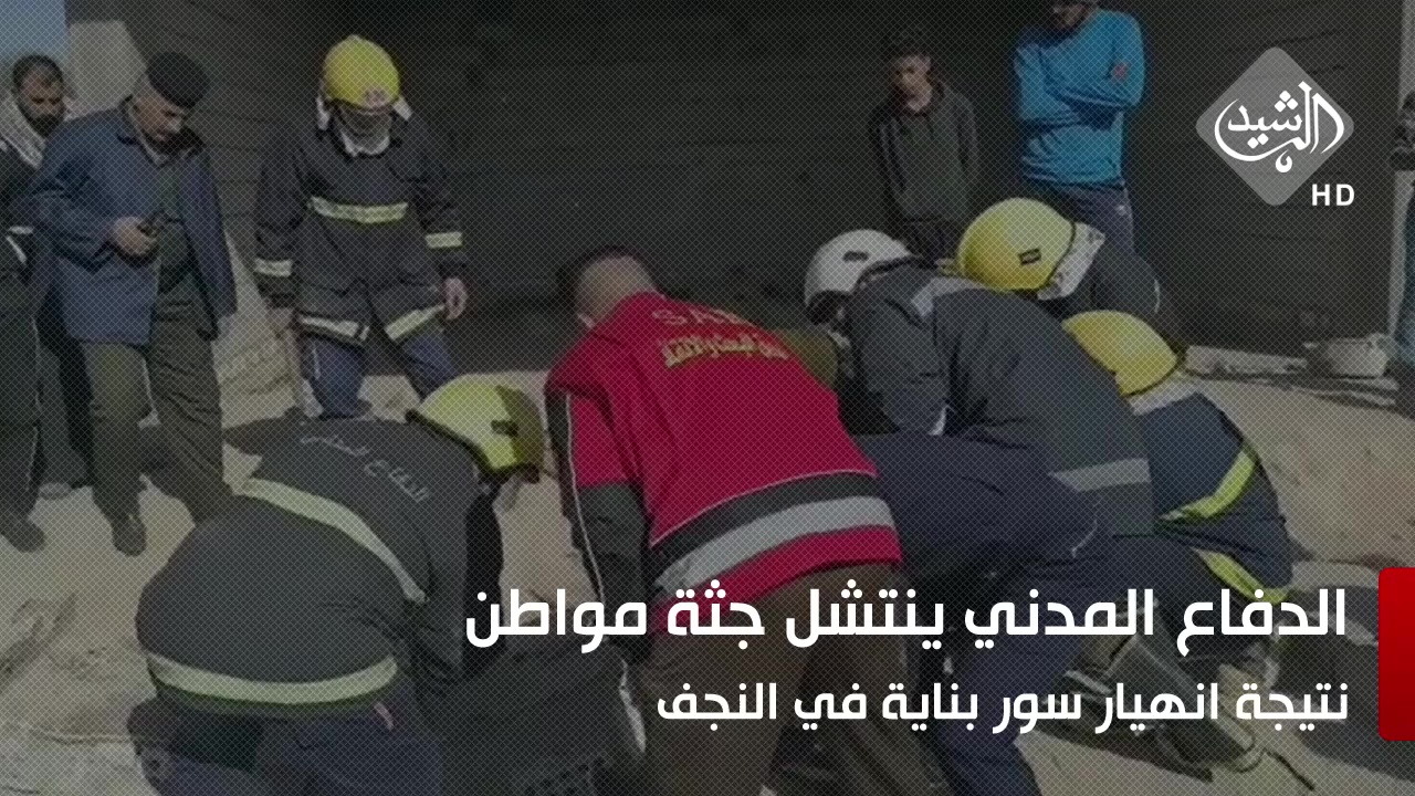 الدفاع المدني ينتشل جثة مواطن نتيجة انهيار سور بناية في النجف (فيديو)