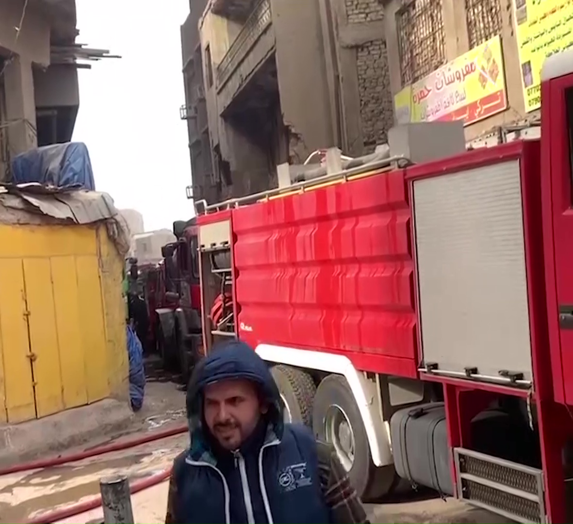 إخماد حريق اندلع داخل سوق هرج وسط بغداد