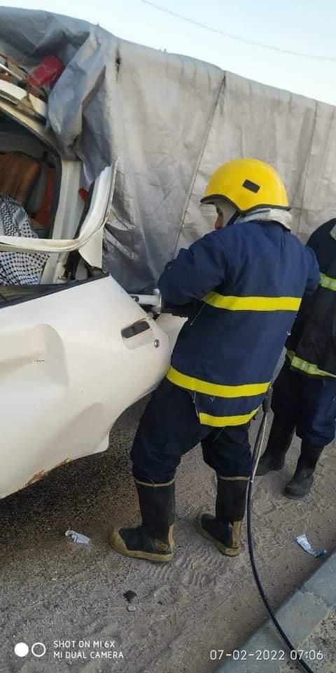 بالصور.. الدفاع المدني ينتشل جثة سائق اصطدم بعجلة اخرى في النجف