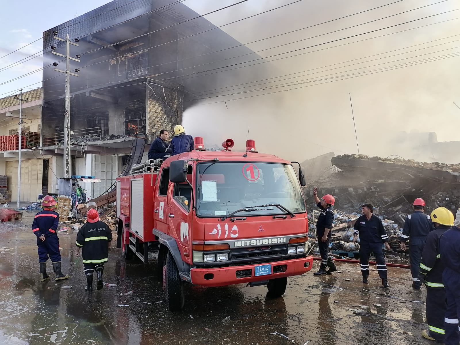 الدفاع المدني تعلن اخماد حريق مخازن تجارية في ميسان واستشهاد احد منتسبيها
