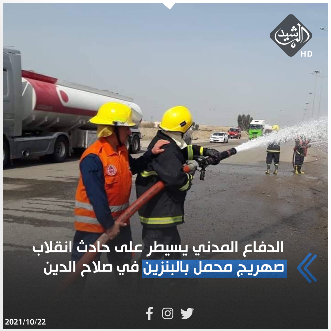 الدفاع المدني يسيطر على حادث انقلاب صهريج محمل بالبنزين في صلاح الدين
