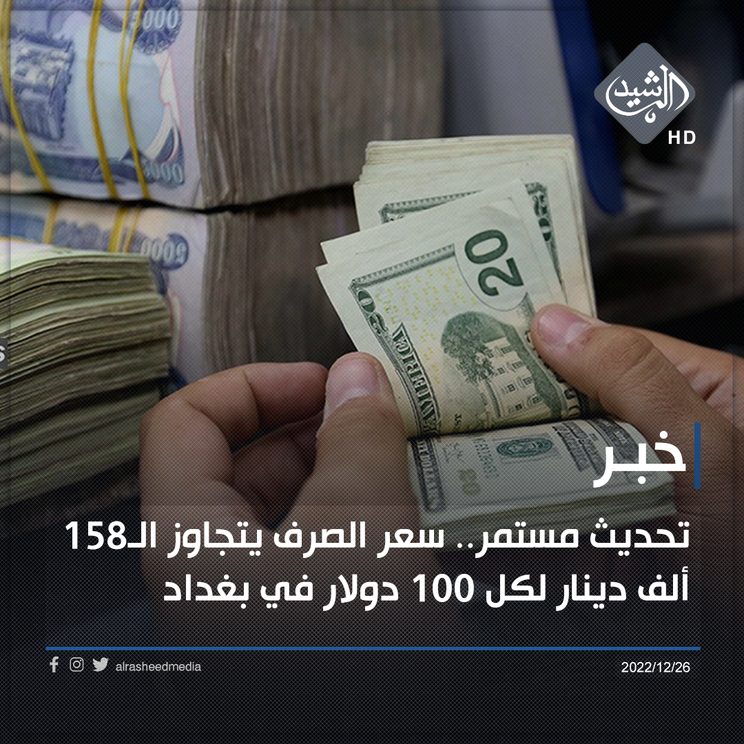 تحديث مستمر.. سعر الصرف يتجاوز الـ158 ألف دينار لكل 100 دولار في بغداد