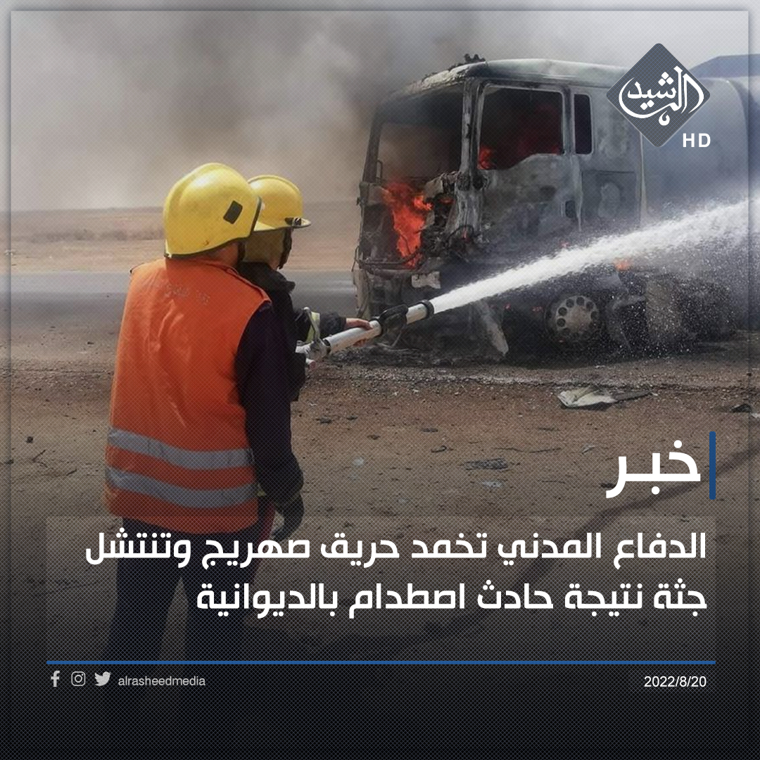 الدفاع المدني تخمد حريق صهريج وتنتشل جثة نتيجة حادث اصطدام بالديوانية