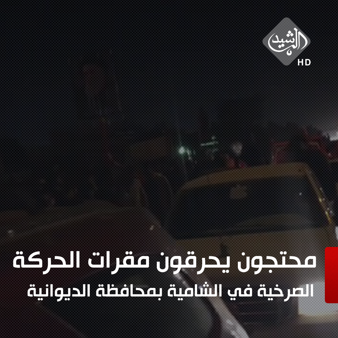 محتجون يحرقون مقرات الحركة الصرخية في الشامية بمحافظة الديوانية