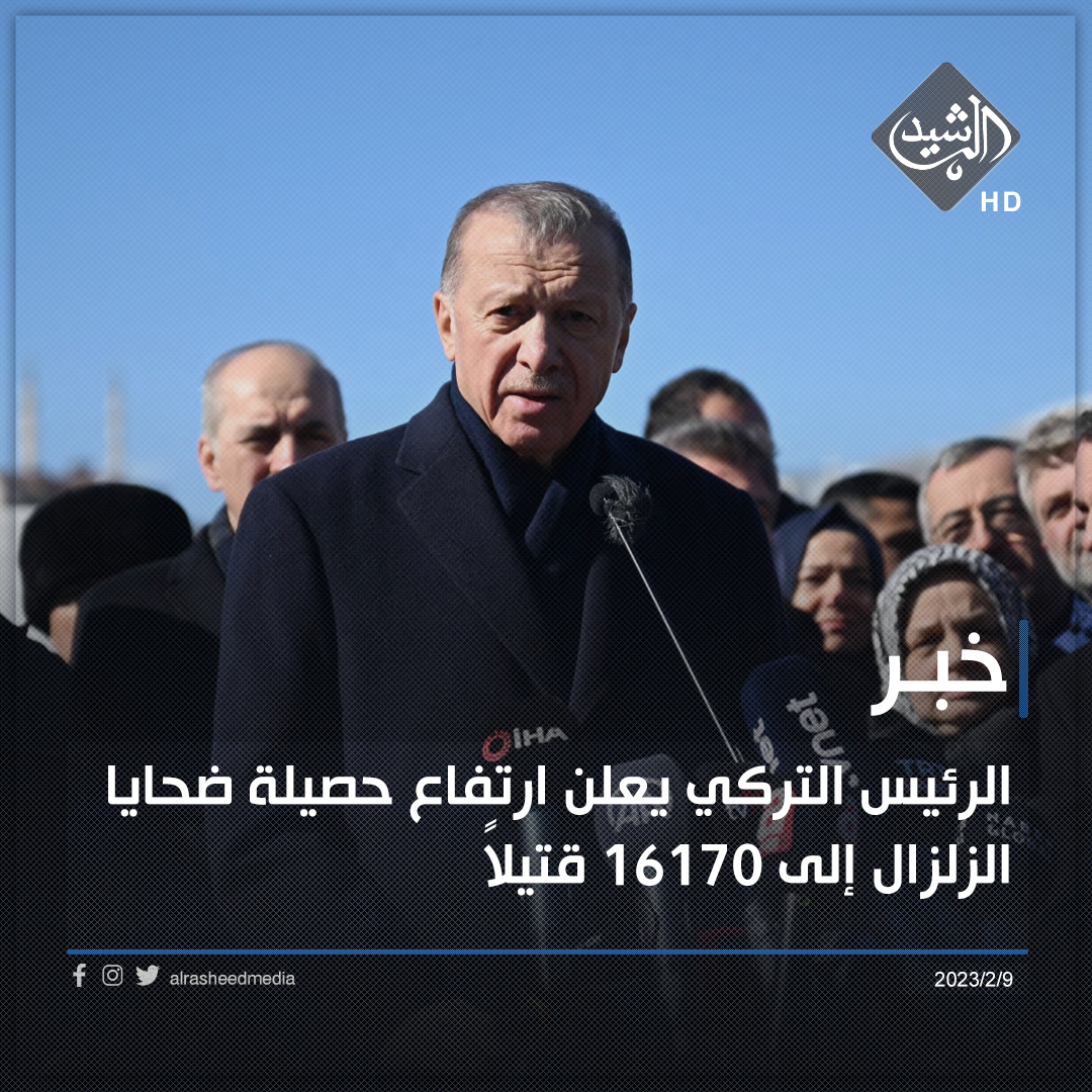 الرئيس التركي يعلن ارتفاع حصيلة ضحايا الزلزال إلى 16170 قتيلاً