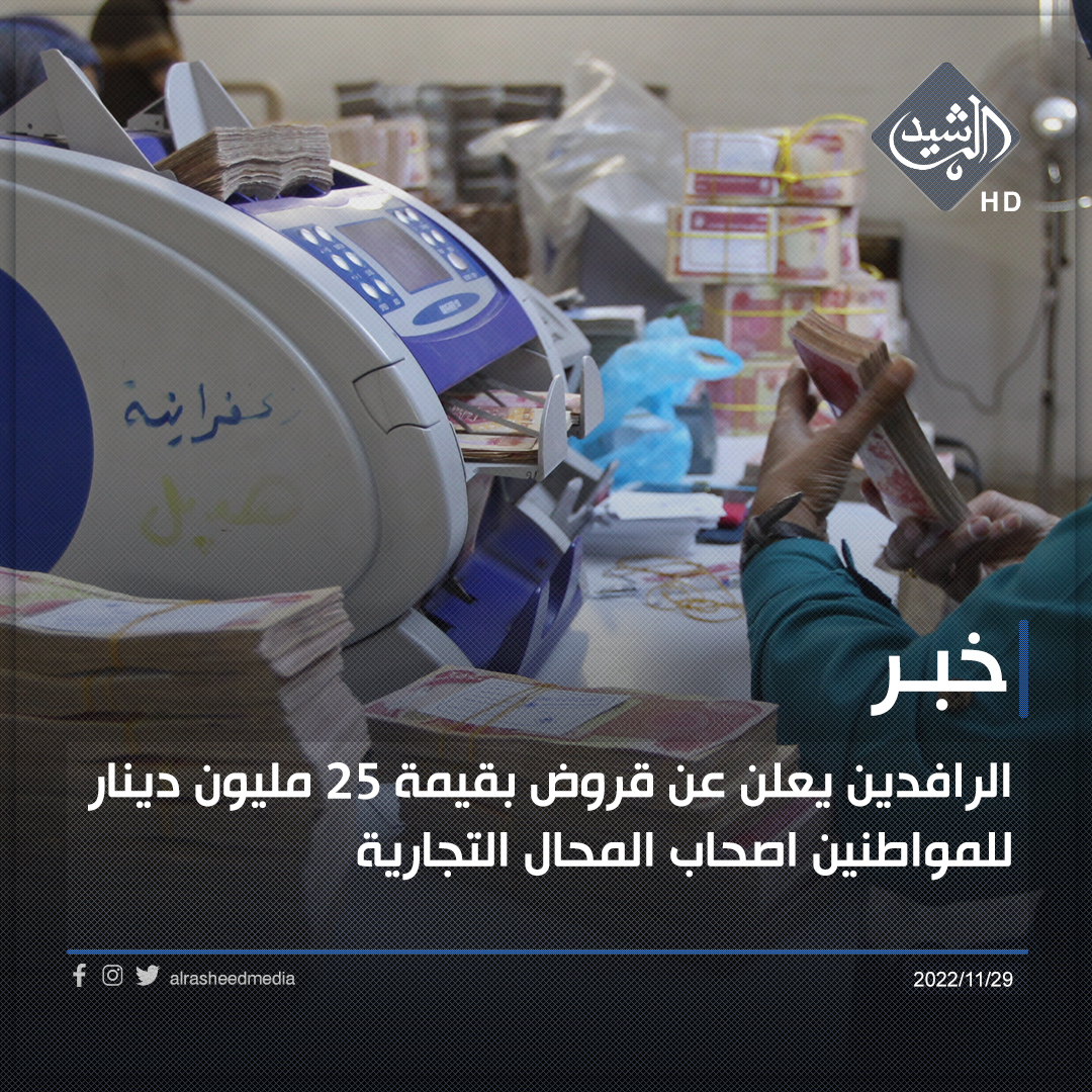 الرافدين يعلن عن قروض بقيمة ٢٥ مليون دينار للمواطنين اصحاب المحال التجارية