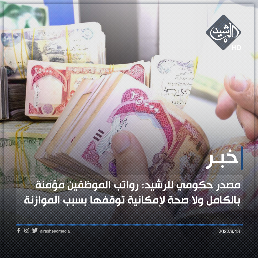 مصدر حكومي للرشيد: رواتب الموظفين مؤمنة بالكامل ولا صحة لإمكانية توقفها بسبب الموازنة