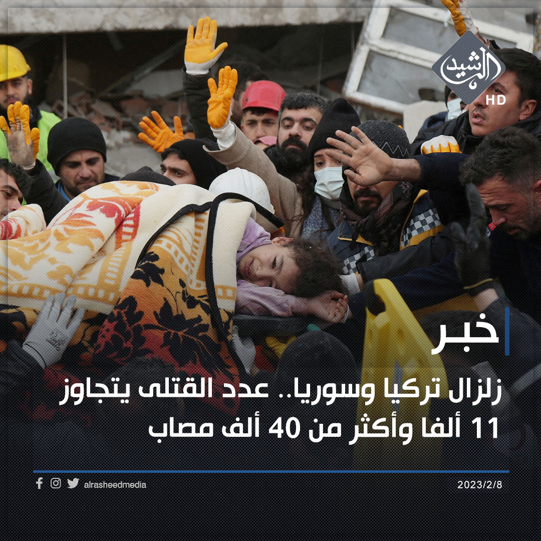 زلزال تركيا وسوريا.. عدد القتلى يتجاوز 11 ألفا وأكثر من 40 ألف مصاب