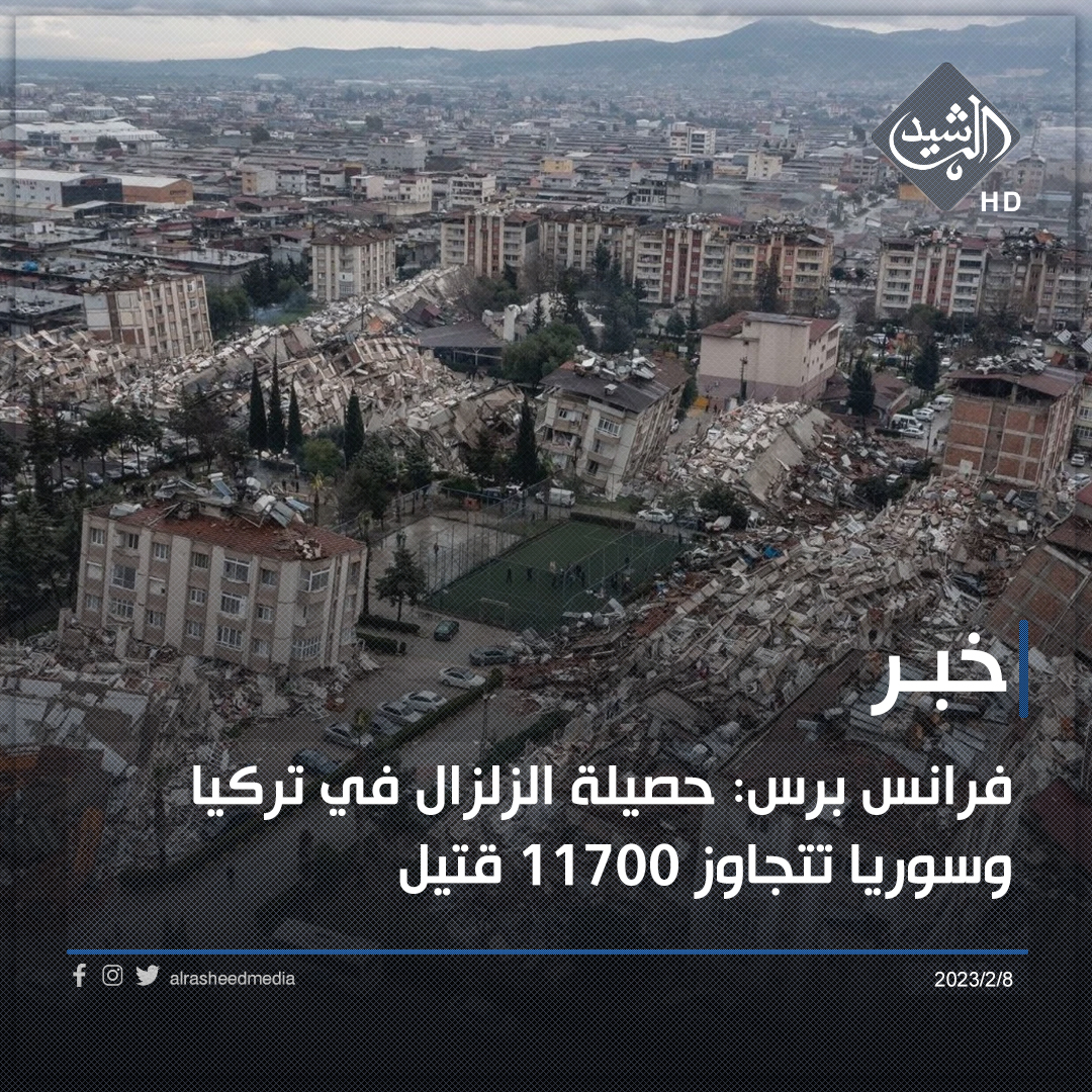 فرانس برس: حصيلة الزلزال في تركيا وسوريا تتجاوز 11700 قتيل