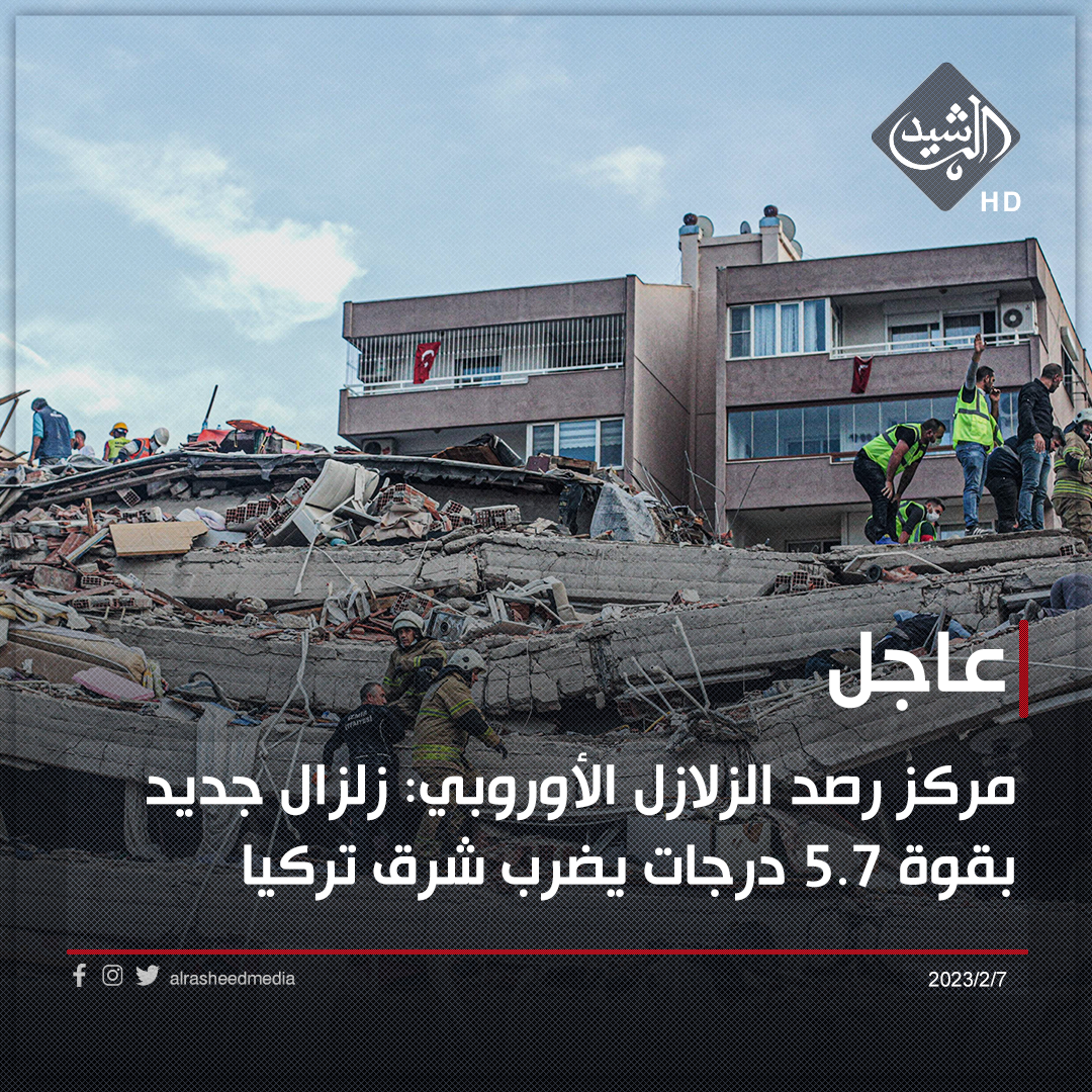 مركز رصد الزلازل الأوروبي: زلزال جديد بقوة 5.7 درجات يضرب شرق تركيا