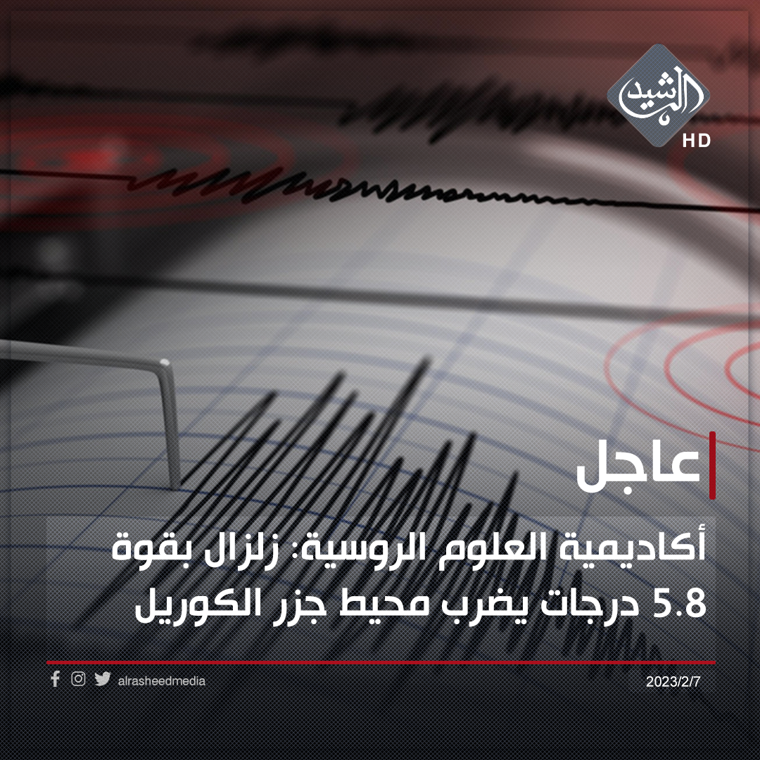 أكاديمية العلوم الروسية: زلزال بقوة 5.8 درجات يضرب محيط جزر الكوريل