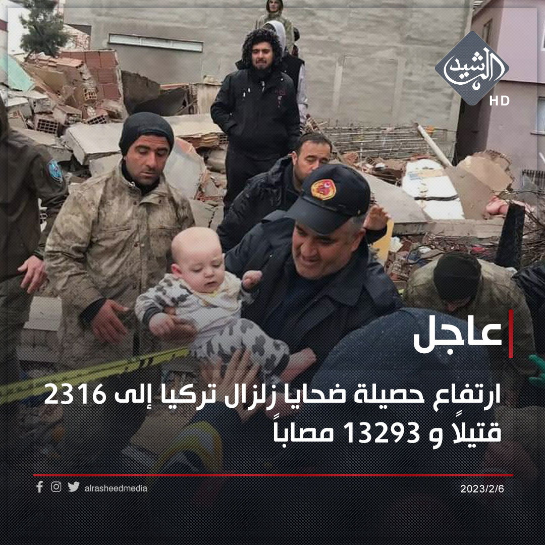 ارتفاع حصيلة ضحايا زلزال تركيا إلى 2316 قتيلاً و 13293 مصاباً