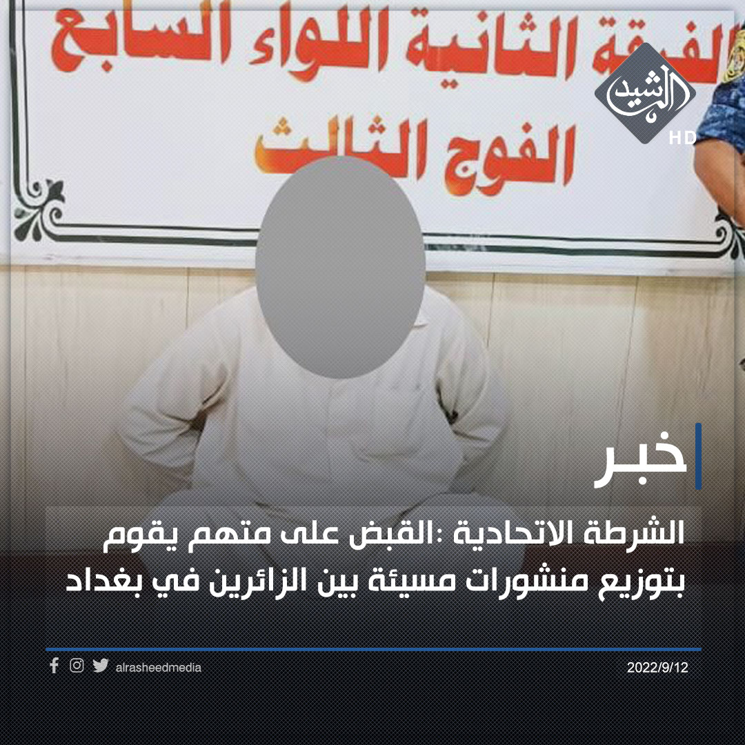 الشرطة الاتحادية :القبض على متهم يقوم بتوزيع منشورات مسيئة بين الزائرين في بغداد