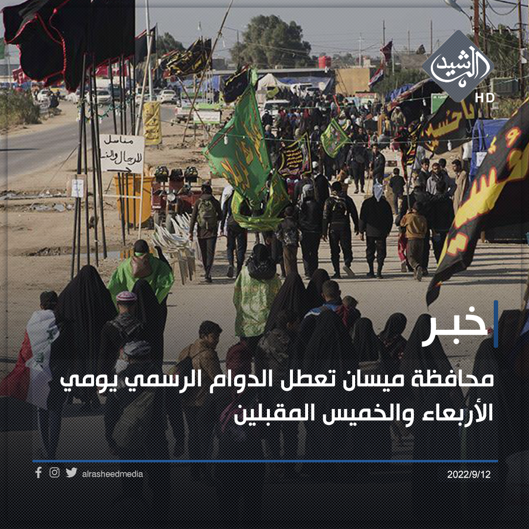 محافظة ميسان تعطل الدوام الرسمي يومي الأربعاء والخميس المقبلين