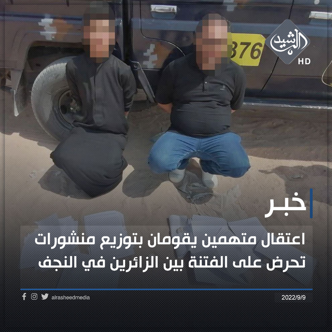 اعتقال متهمين يقومان بتوزيع منشورات تحرض على الفتنة بين الزائرين في النجف