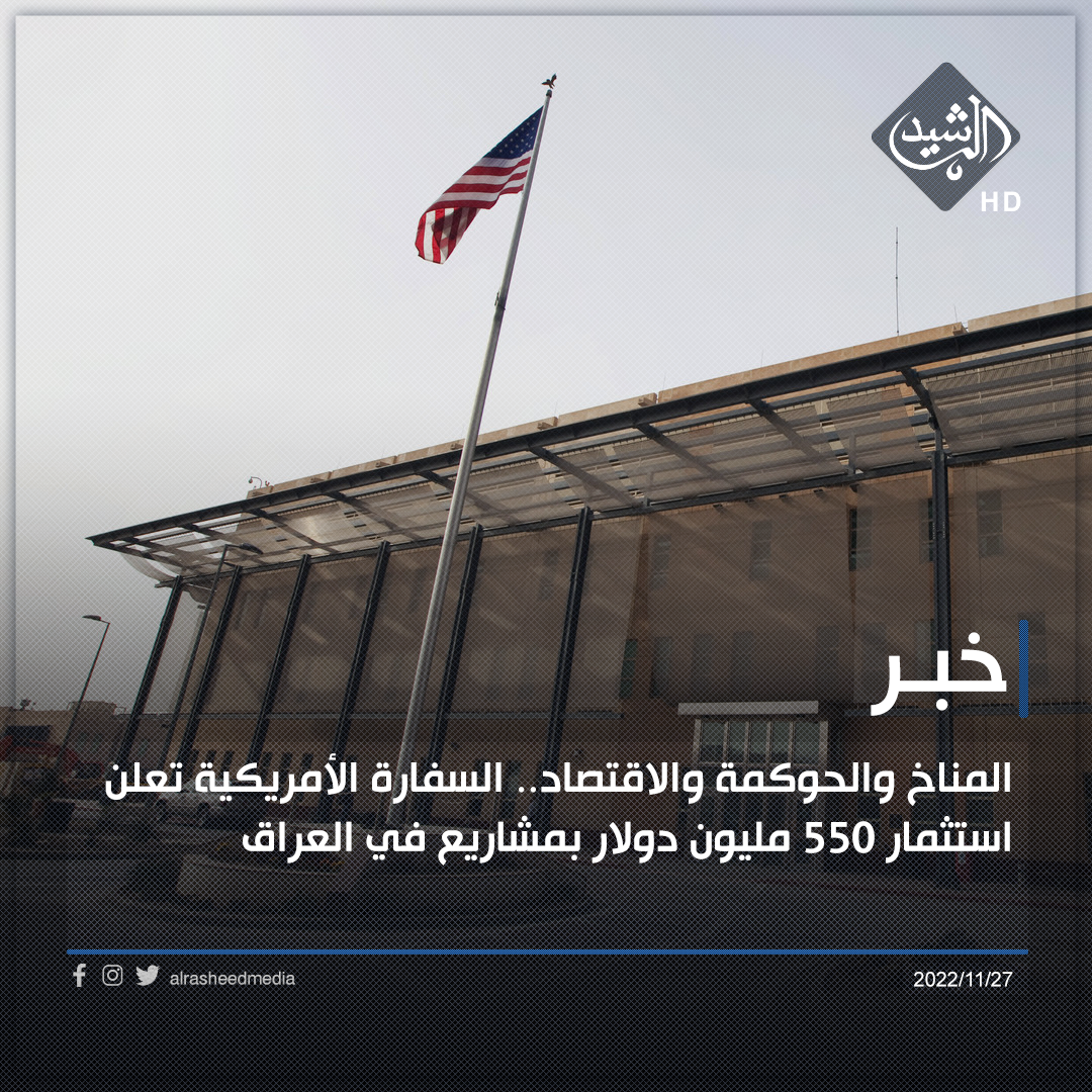 المناخ والحوكمة والاقتصاد.. السفارة الأمريكية تعلن استثمار 550 مليون دولار بمشاريع في العراق