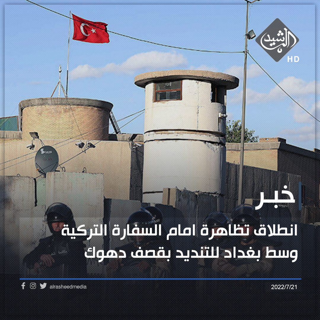 انطلاق تظاهرة امام السفارة التركية وسط بغداد للتنديد بقصف دهوك