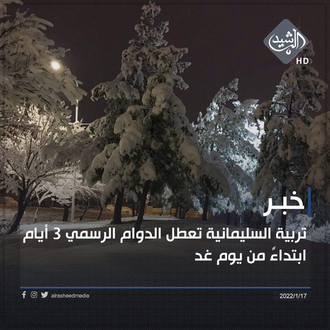 تربية السليمانية تعطل الدوام الرسمي 3 أيام ابتداءً من يوم غد