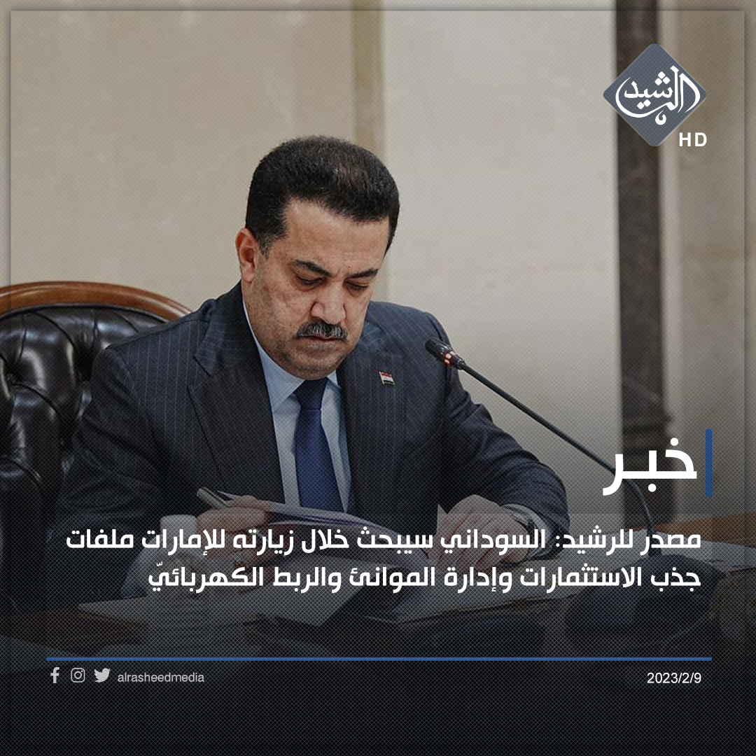مصدر للرشيد: السوداني سيبحث خلال زيارته للإمارات ملفات جذب الاستثمارات وإدارة الموانئ والربط الكهربائيّ