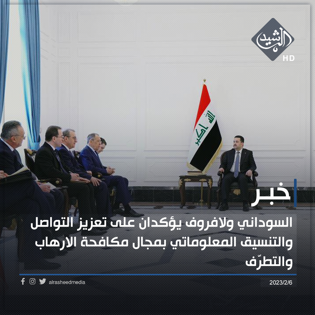 السوداني ولافروف يؤكدان على تعزيز التواصل والتنسيق المعلوماتي بمجال مكافحة الارهاب والتطرّف