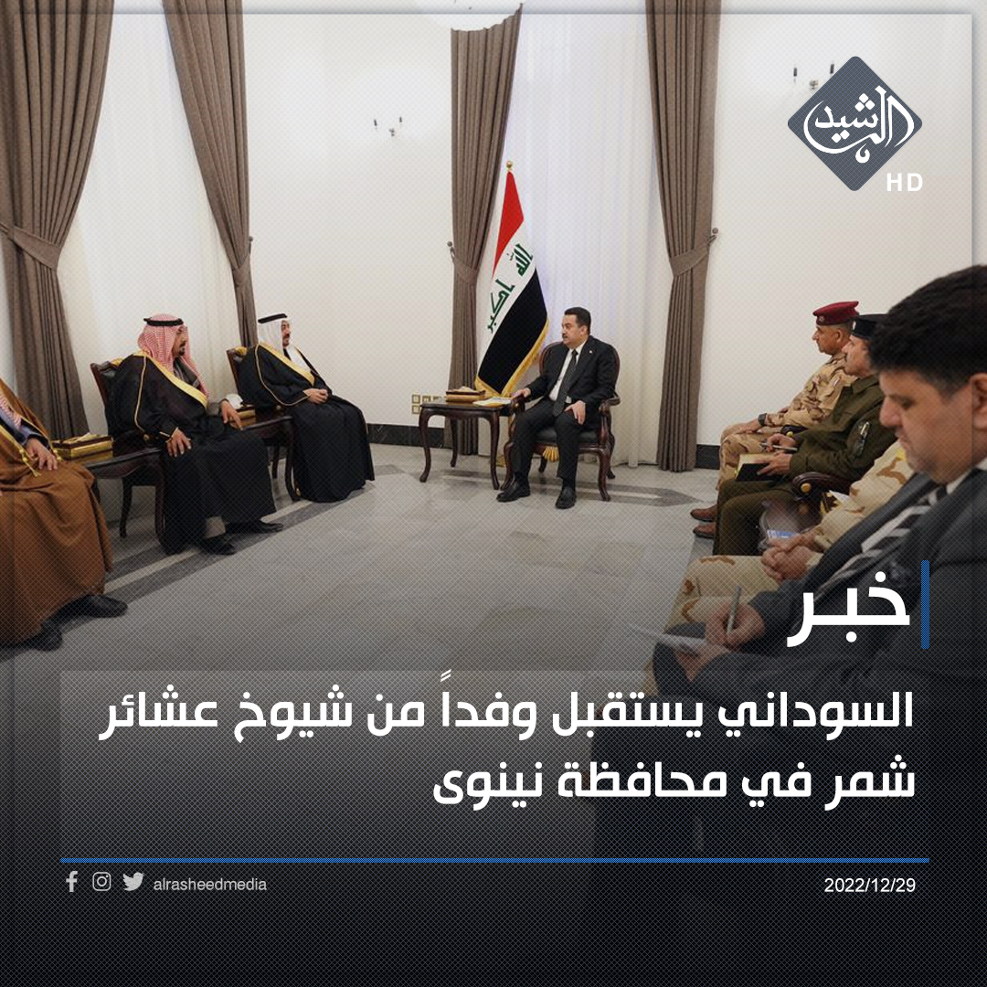 السوداني يستقبل وفداً من شيوخ عشائر شمر في محافظة نينوى