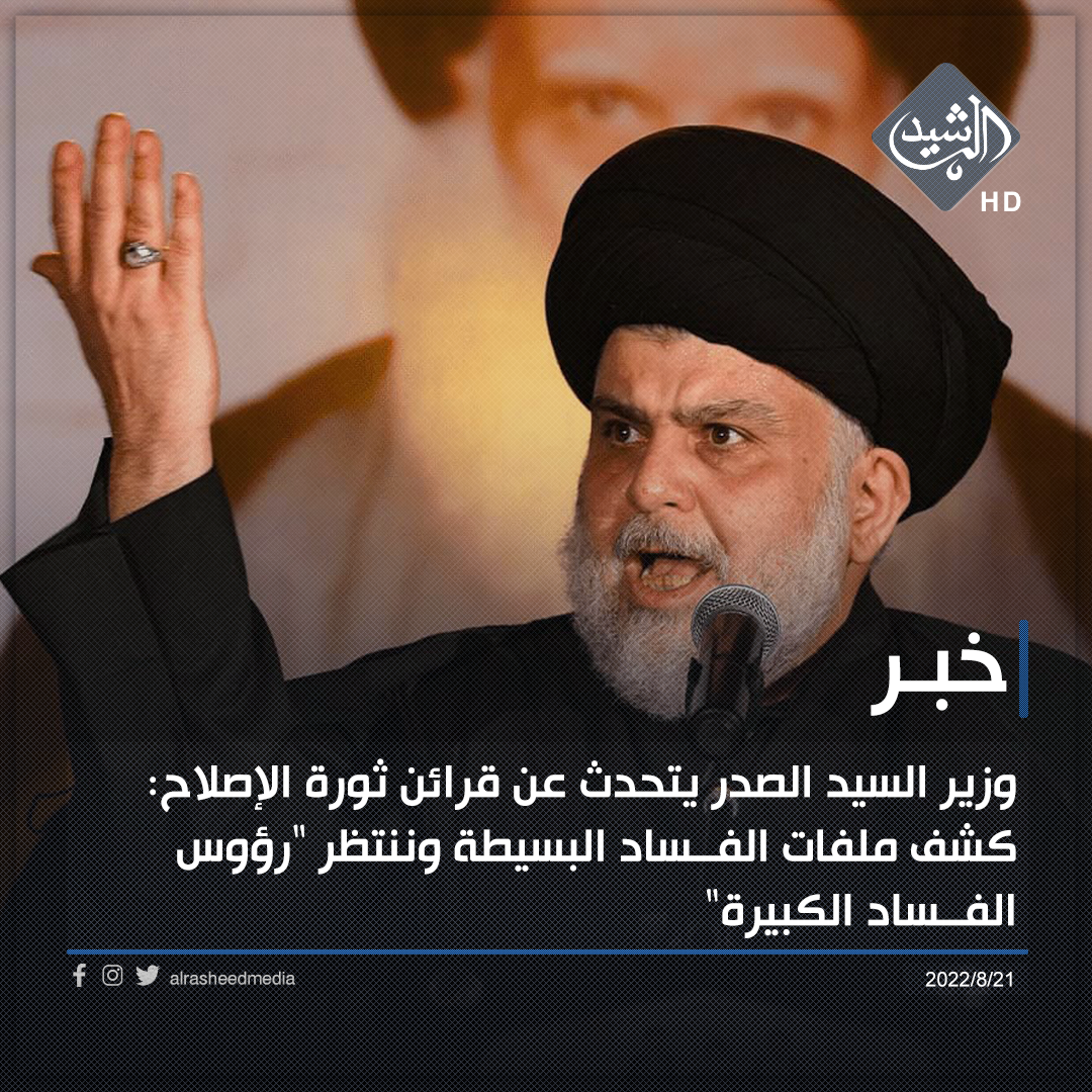 وزير السيد الصدر يتحدث عن قرائن ثورة الإصلاح: كشف ملفات الفــساد البسيطة وننتظر "رؤوس الفــساد الكبيرة"