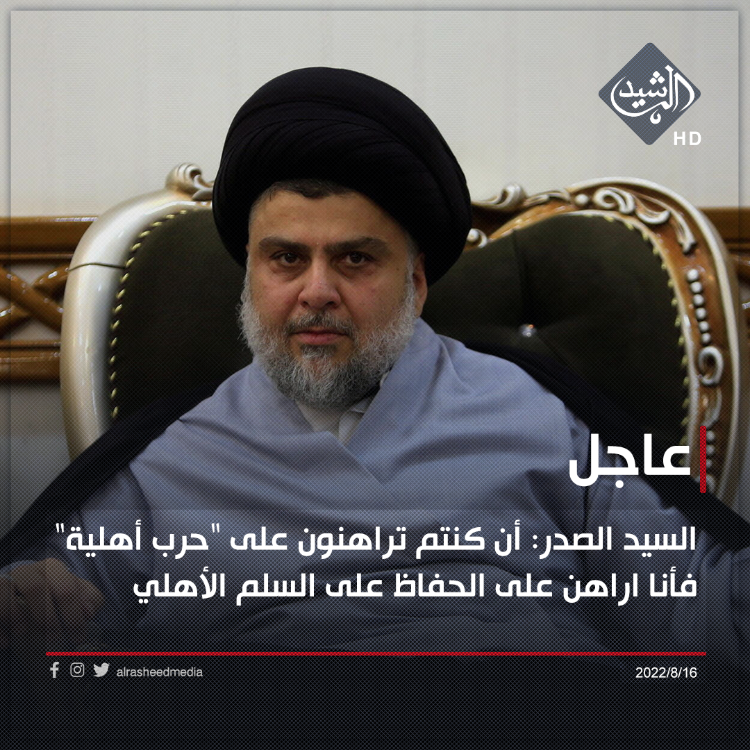 السيد الصدر: أن كنتم تراهنون على "حرب أهلية" فأنا اراهن على الحفاظ على السلم الأهلي
