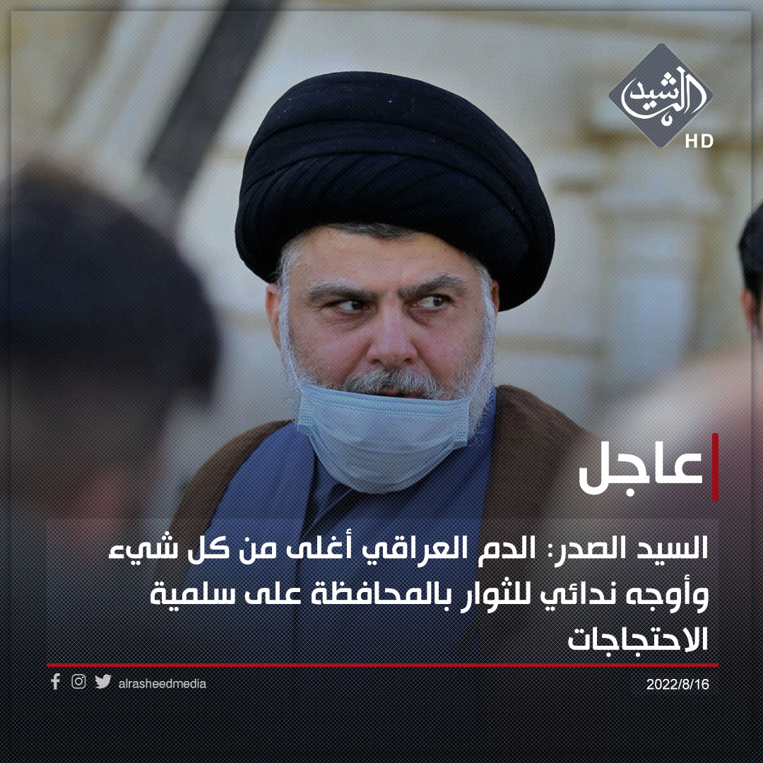 السيد الصدر: الدم العراقي أغلى من كل شيء وأوجه ندائي للثوار بالمحافظة على سلمية الاحتجاجات