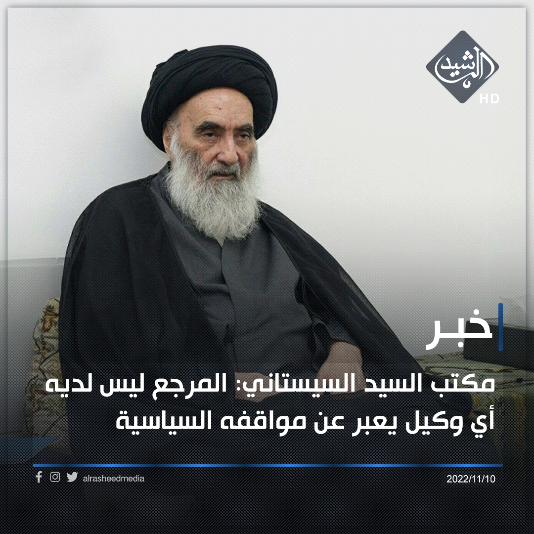 مكتب السيد السيستاني: المرجع ليس لديه أي وكيل يعبر عن مواقفه السياسية