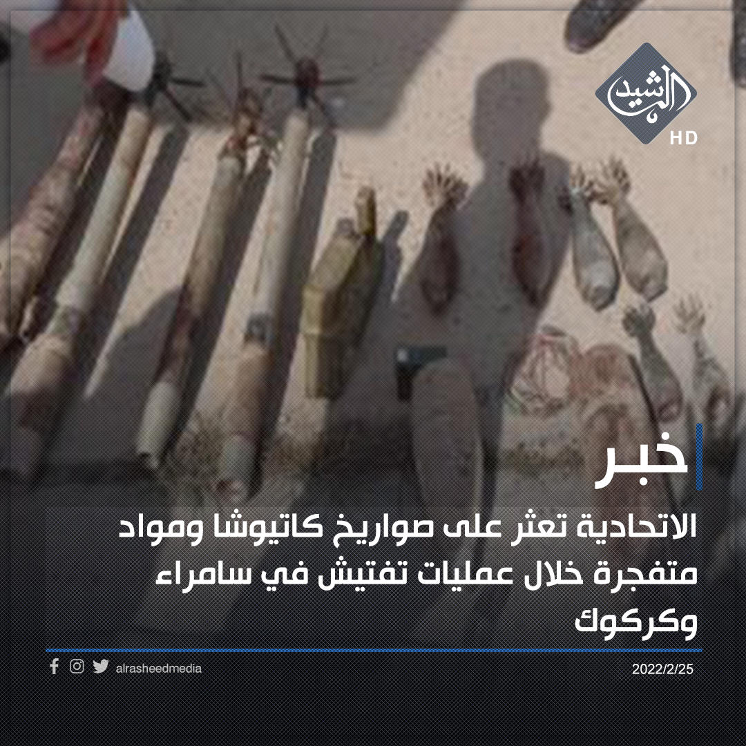 الاتحادية تعثر على صواريخ كاتيوشا ومواد متفجرة خلال عمليات تفتيش في سامراء وكركوك