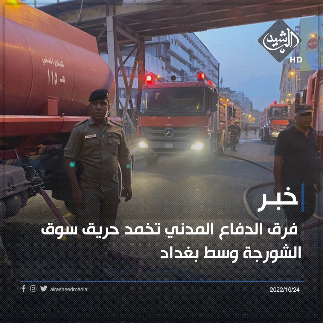 فرق الدفاع المدني تخمد حريق سوق الشورجة وسط بغداد