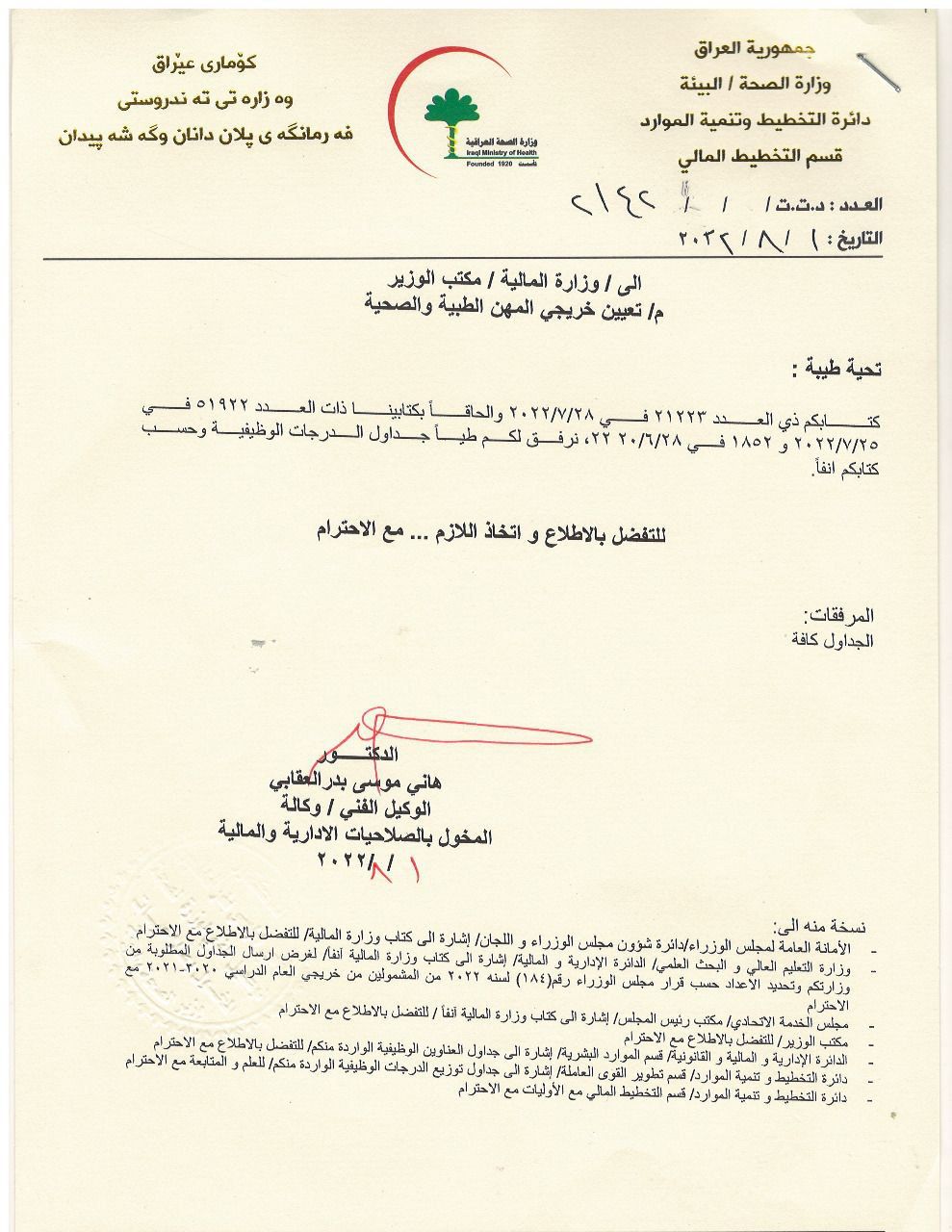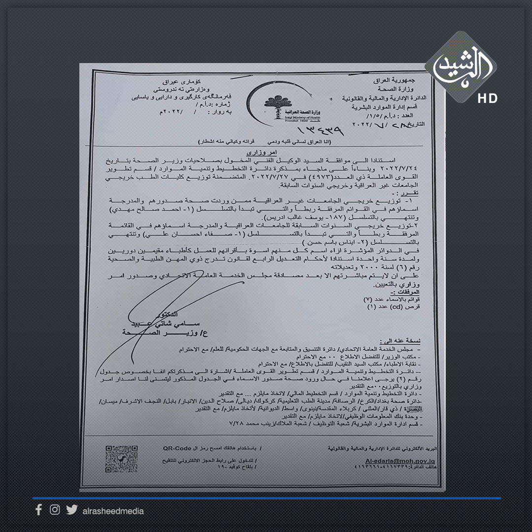 الصحة تصدر أمراً وزارياً بتوزيع خريجي كليات الطب