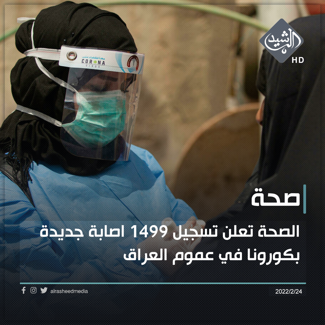الصحة تعلن تسجيل 1499 اصابة جديدة بكورونا في عموم العراق