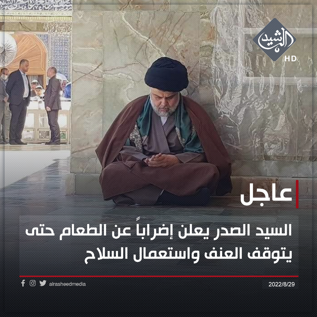 السيد الصدر يعلن إضراباً عن الطعام حتى يتوقف العنف واستعمال السلاح