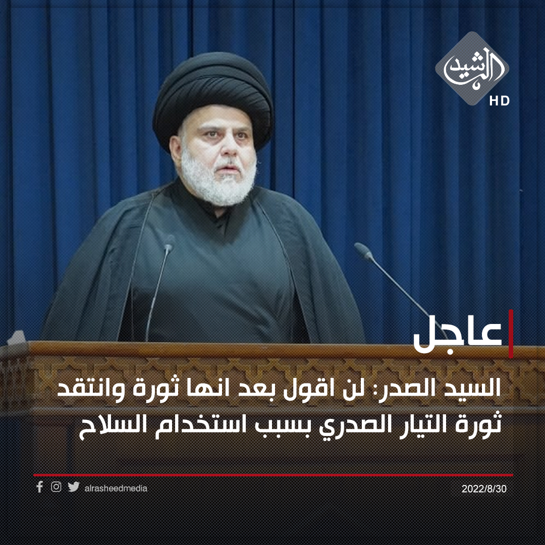 السيد الصدر: لن اقول بعد انها ثورة وانتقد ثورة التيار الصدري بسبب استخدام السلاح