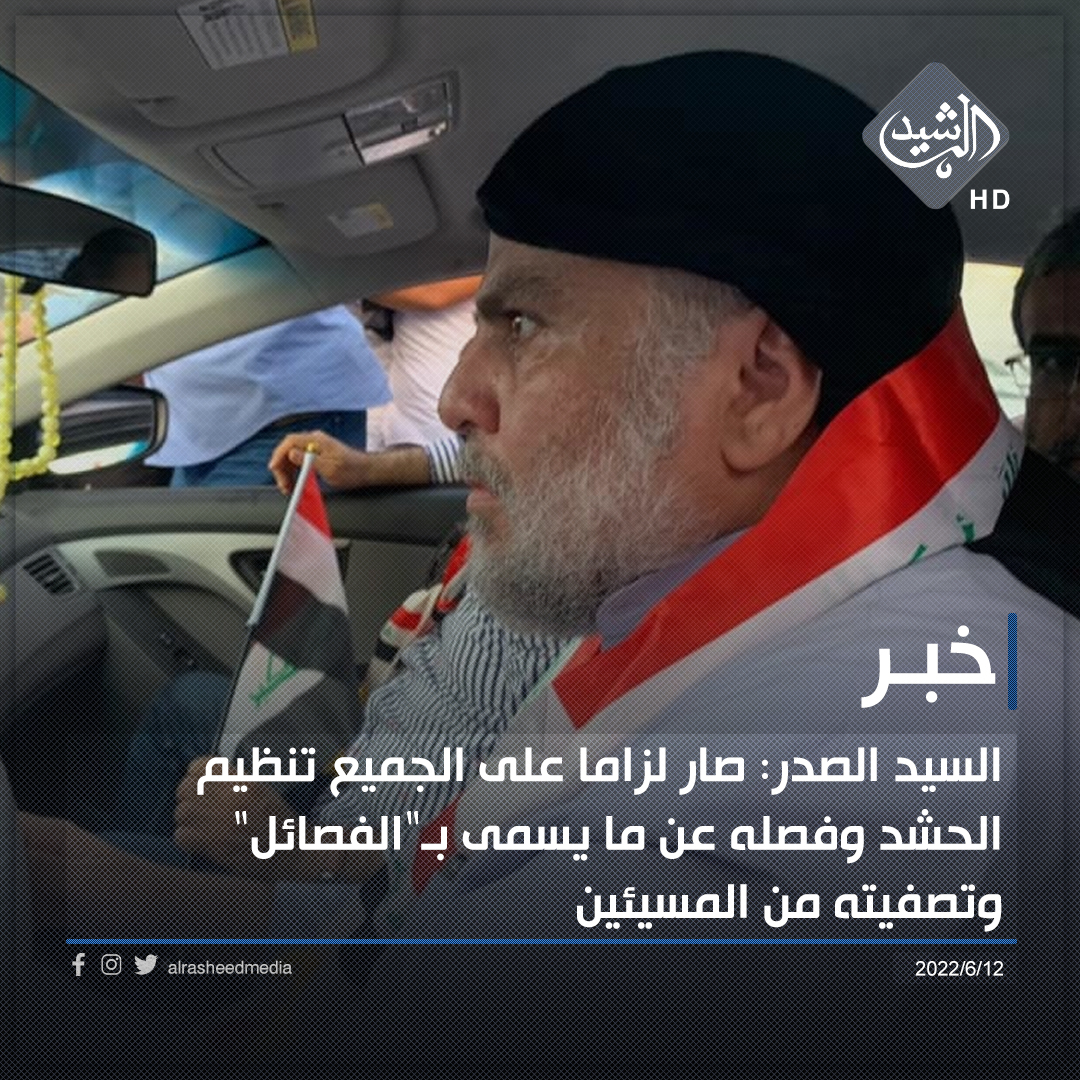السيد الصدر: صار لزاما على الجميع تنظيم الحشد وفصله عن ما يسمى بـ"الفصائل" وتصفيته من المسيئين