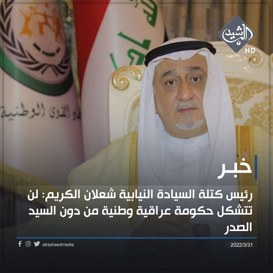رئيس كتلة السيادة النيابية شعلان الكريم: لن تتشكل حكومة عراقية وطنية من دون السيد الصدر