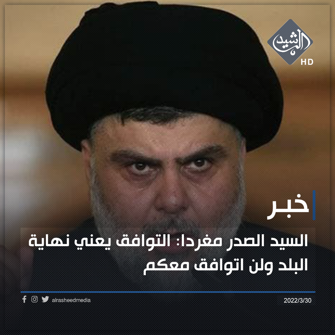 السيد الصدر مغردا: التوافق يعني نهاية البلد ولن اتوافق معكم