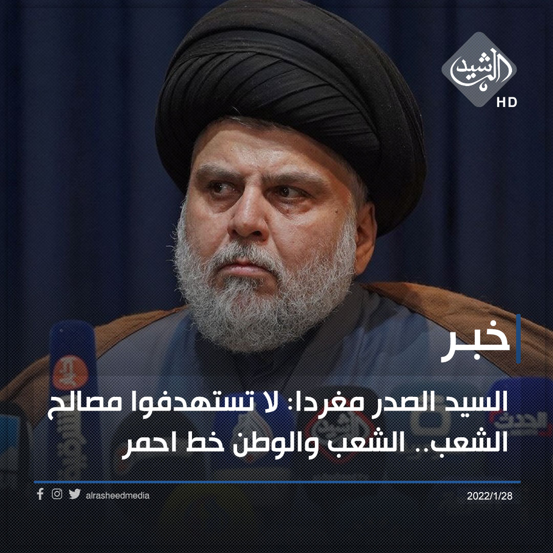 السيد الصدر مغردا: لا تستهدفوا مصالح الشعب.. الشعب والوطن خط احمر