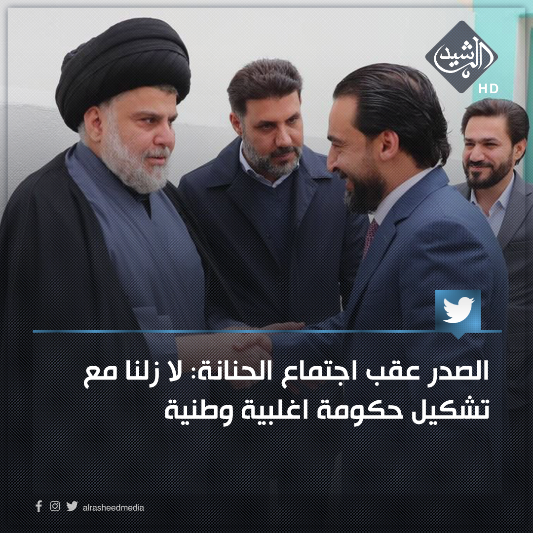 الصدر يغرد عقب اجتماع الحنانة: لا زلنا مع تشكيل حكومة اغلبية وطنية